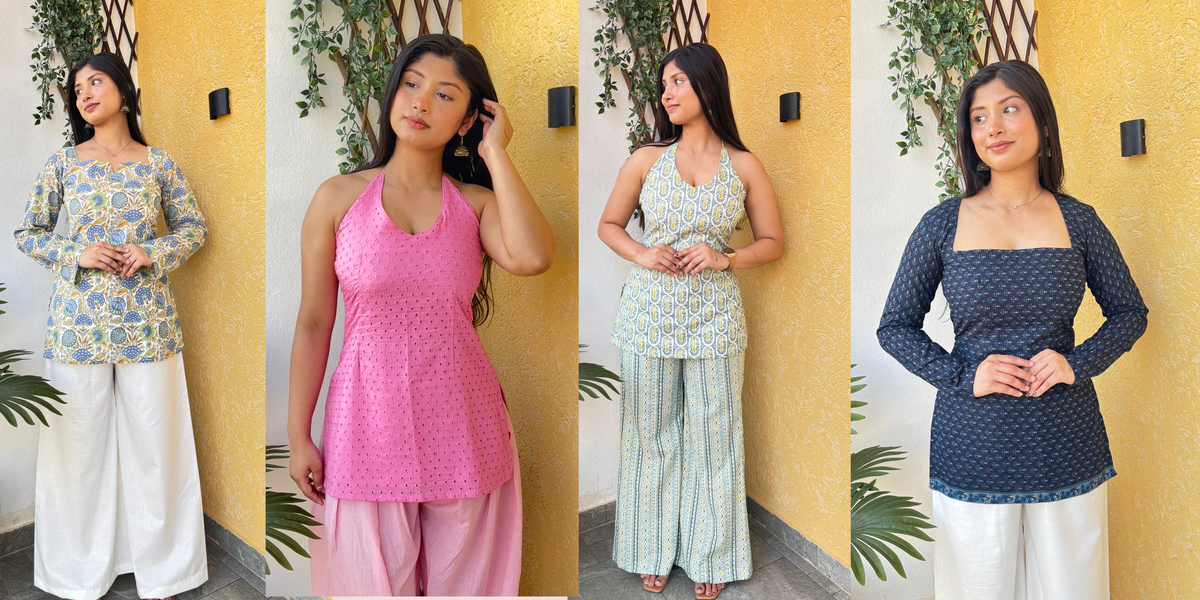 We primarily use pure cotton fabrics that are breathable, soft on the skin, and perfect for everyday comfort.
